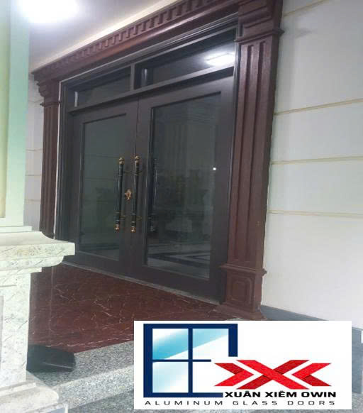 Vật liệu chính: Nhôm Owin màu vân gỗ trắc, kính cường lực 10 ly trắng trong